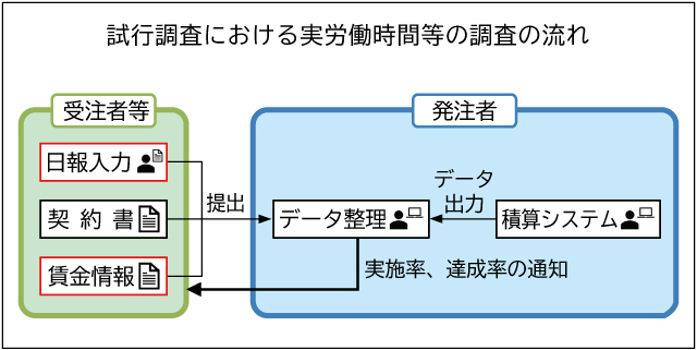 国土交通省は、直轄土木工事を対象に技能労働者への賃金支払いや労働時間の実態調査を試行する。調査方法や調査結果の算定方法を確認することが目的で、受注者希望方式で実施する。国交省では、調査を通して賃金の支払いや労働時間を把握することにより、賃金を原資とした低価格競争を抑止し、健全な競争環境の実現につなげていく。
